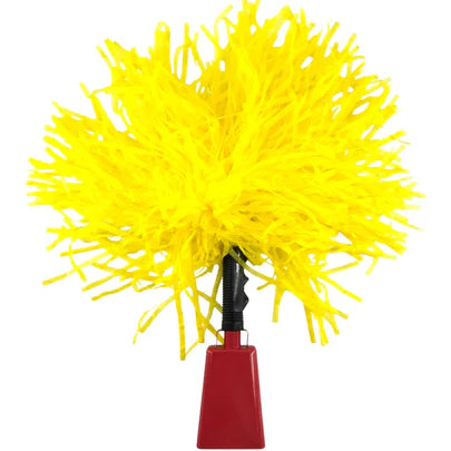The PomBell is the ultimate fan gear — a cowbell topped with team-colored pom-poms. Perfect for games, tailgates, and school spirit events.